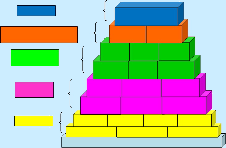 Learning occurs in the form of a “building block triangle” (figure 1). The central nervous system is at the foundation. Each layer of building blocks must properly integrate with the previous layer or layers in order to move on to the next level. The ultimate goal is to reach the cognitive level of functioning in order to attend to the tasks of daily living and learning. The building clearly illustrates the key importance of the senses, and how the rest of our learning ability completely relies on the foundation of the senses.